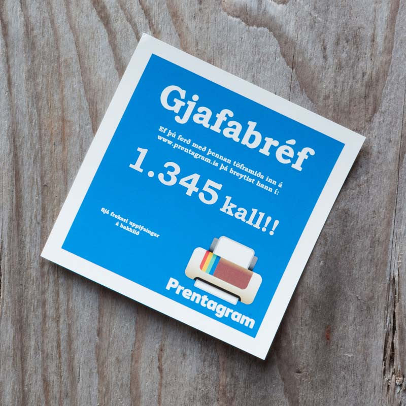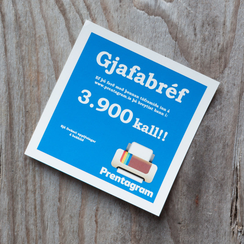 Hér getur þú pantað gjafabréf sent í tölvupósti ásamt upplýsingum svo að einfalt er að nýta gjafabréfið næst þegar panta skal hvaða vörur sem er á heimasíðu Prentagram. Þú getur svo prentað gjafabréfið út eða einfaldlega sent tölvupóstinn beint á viðkomandi ef um gjöf er að ræða.